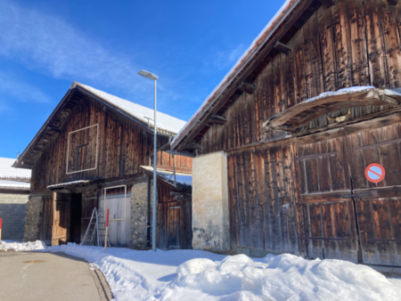 Mitten in Jonschwil wurden in einer Remise übereinander drei, zueinander abgedrehte, Zimmer eingebaut. Diese Stapelung öffnet einen spiralförmigen vertikalen Lebensraum durch alle drei Stockwerke hindurch.