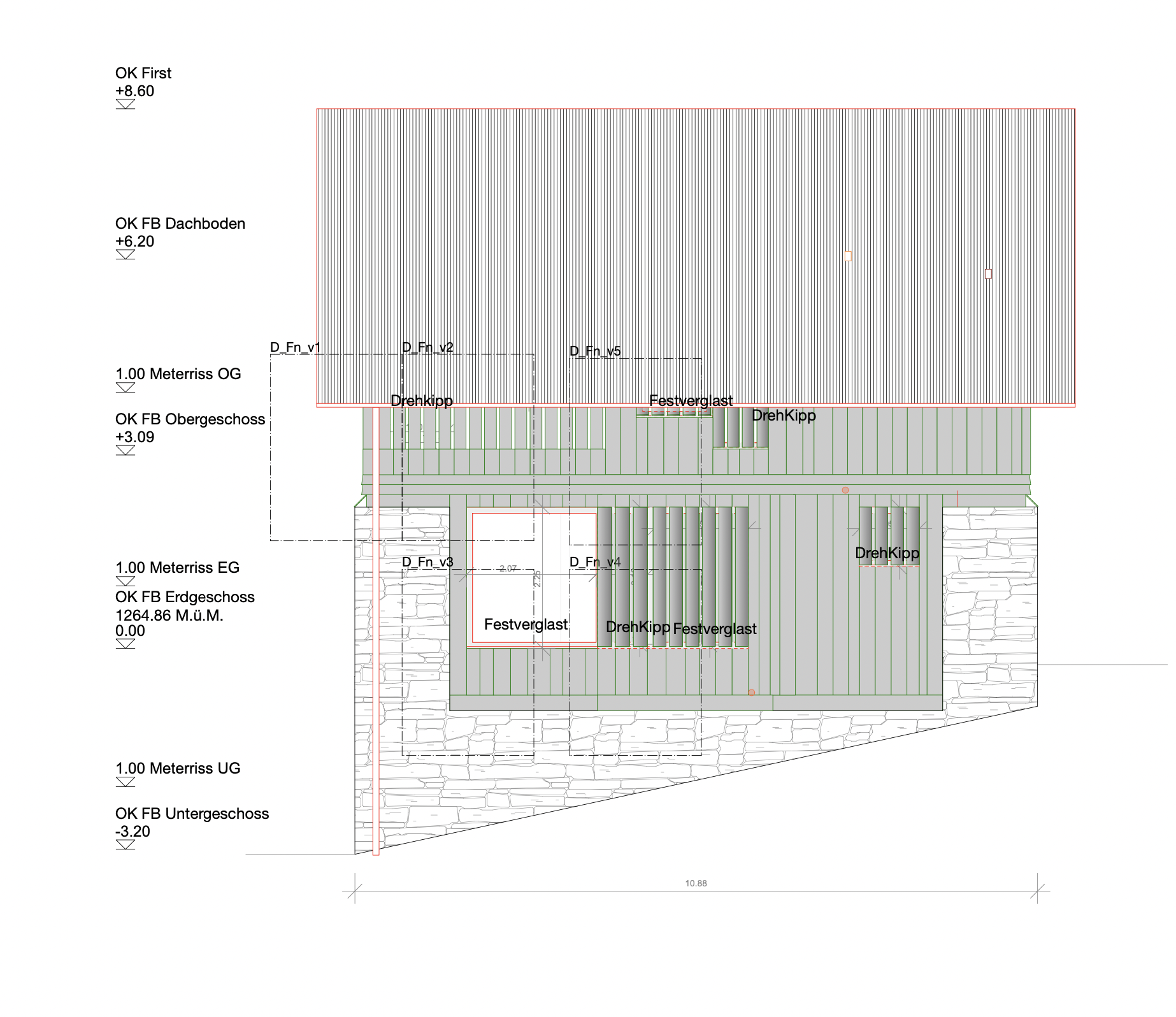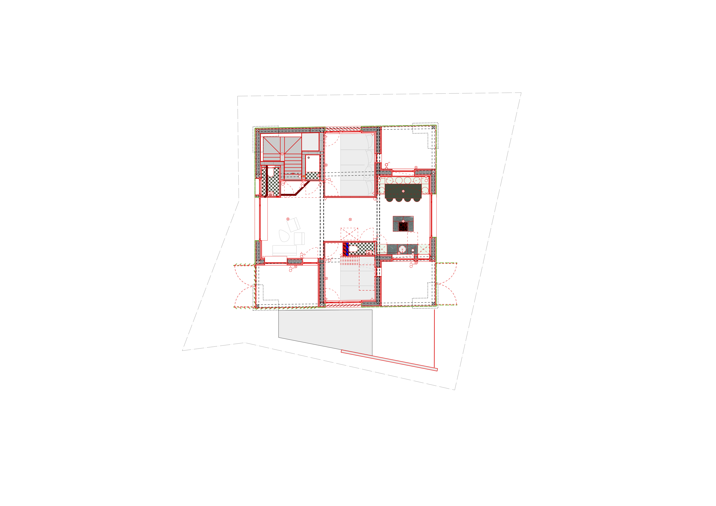 Der Stall in Riom-Parsonz überhalb Savognin steht wie andere Ställe im Dorfkern teils umrundet von bewohnten Häusern. Ihre Grösser übertrifft teilweise die Grösse der bewohnten Häusern. Oft stehen sie mittlerweile eher untergenutzt da, beherbergen im Innern hölzerne historische Objekte die früher unabdingbar waren. Der Umbau von Stall in Wohnung mit Einliegerwohnung wird den Stall auch nach den Arbeiten als Stall aussehen lassen. Es waren nicht nur der Ortsbildschutz der dies so vorgab, es war auch die Idee der Bauherrschaft dass dieses Kulturgut visuell bestehen bleibt. So zieht sich der Umbau hinter die offenen Natursteinecken und unter dem bestehenden Dach zurück, dass diese im Innern wie vom Aussenraum erkennbar bleiben. Das abgedunkelte und verwitterte Holz der Fassaden wird wenn immer möglich wiederverwendet an der Fassade selber. Die meisten Fenster liegen hinter Holzlamellen um den visuellen Aspekt der Stalles beizubehalten. Im Innern werden die beiden Wohneinheiten unterschiedlich behandelt, einmal in Vollholz und einmal im eher urbaneren Stiel mit mineralischen Böden. Die integrierte PV In-Dach-Anlage mit Wärmepumpe geben den neuen Wohnungen eine zeitgemässe Energiegewinnung. Nur wenige sichtbare Fenster lassen erahnen dass das Innere dem alten Äusseren ein neues Leben einhaucht.