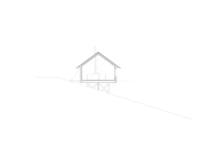Mitten in Jonschwil wurden in einer Remise übereinander drei, zueinander abgedrehte, Zimmer eingebaut. Diese Stapelung öffnet einen spiralförmigen vertikalen Lebensraum durch alle drei Stockwerke hindurch.