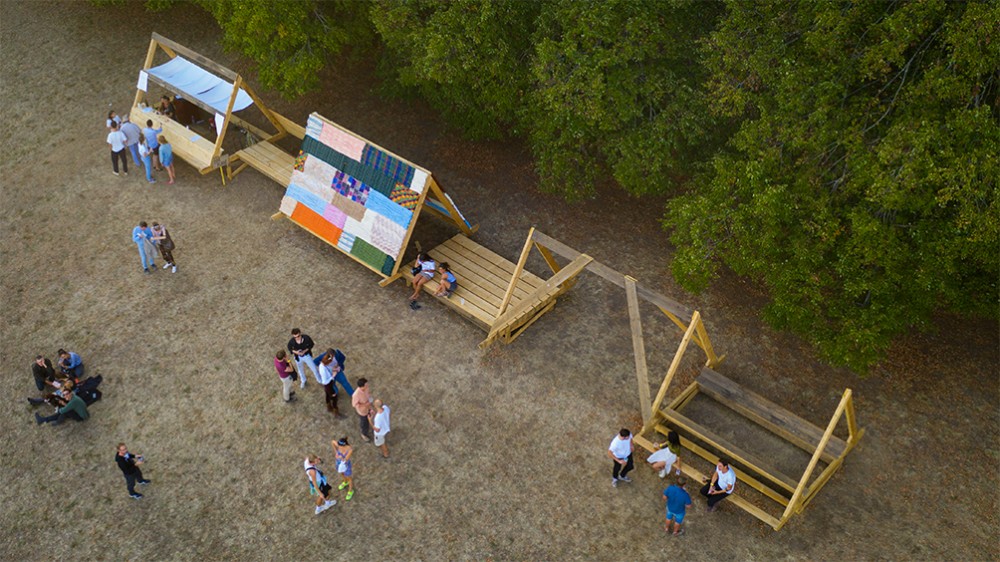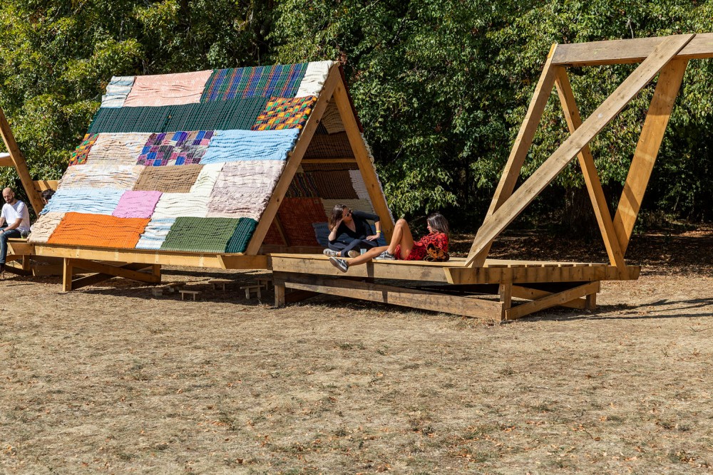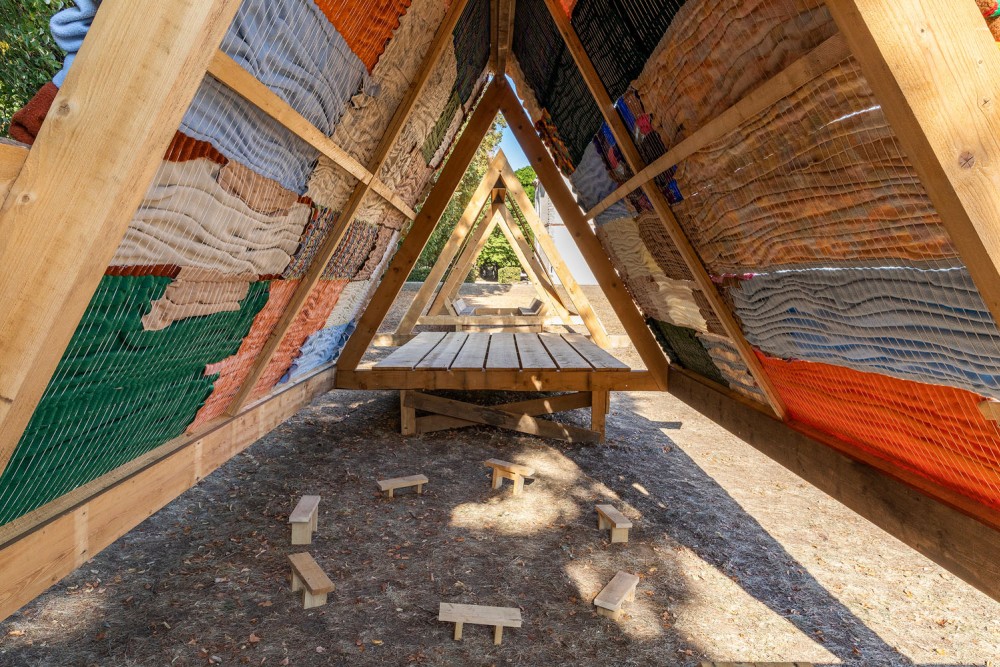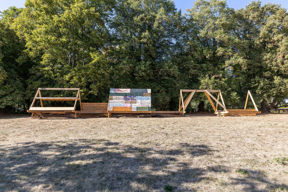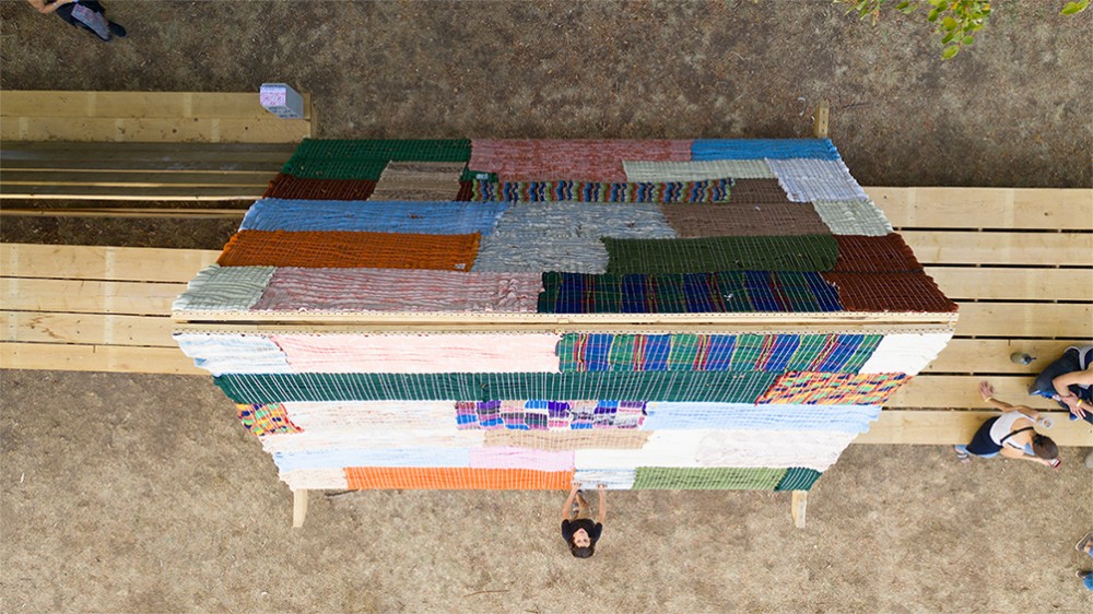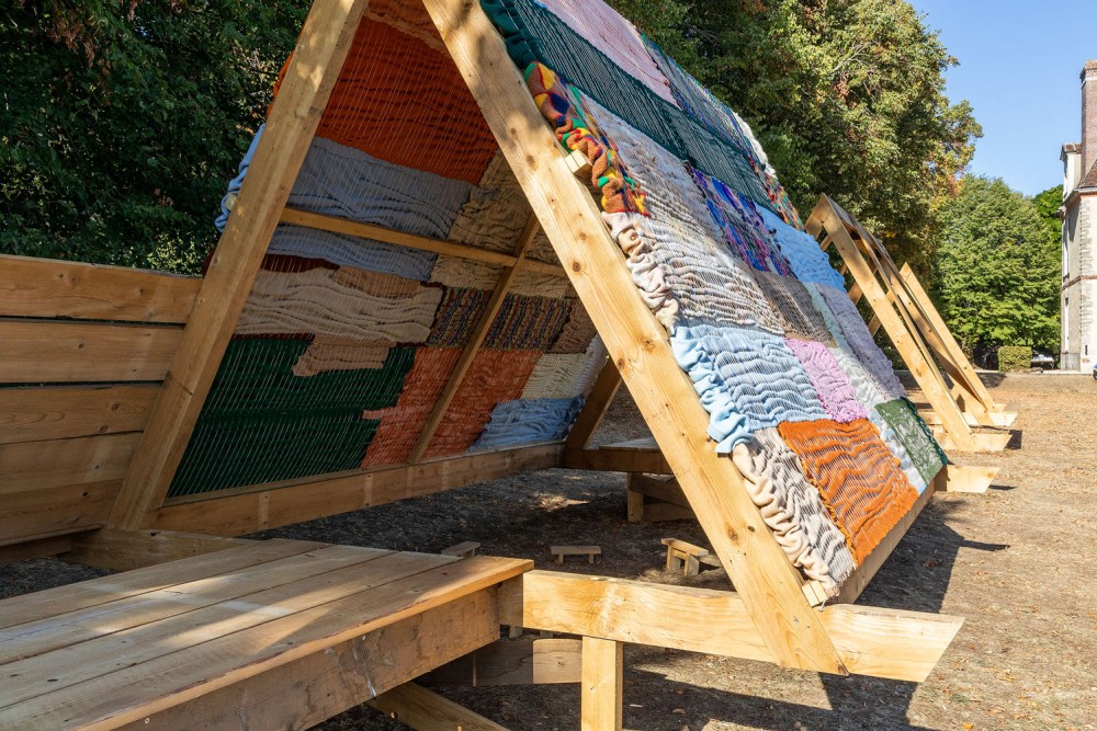 Pour le festival d’arts au Château du Feÿ, TOBî accueille un très beau revêtue du tissage réalisé par Estelle Balet, Estelle Bourdet et Elena Chiavi. La structure accueille les festivaliers pour un moment de détente.