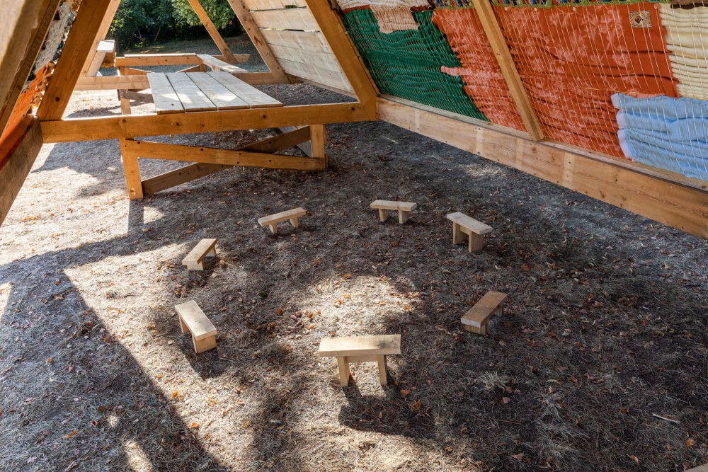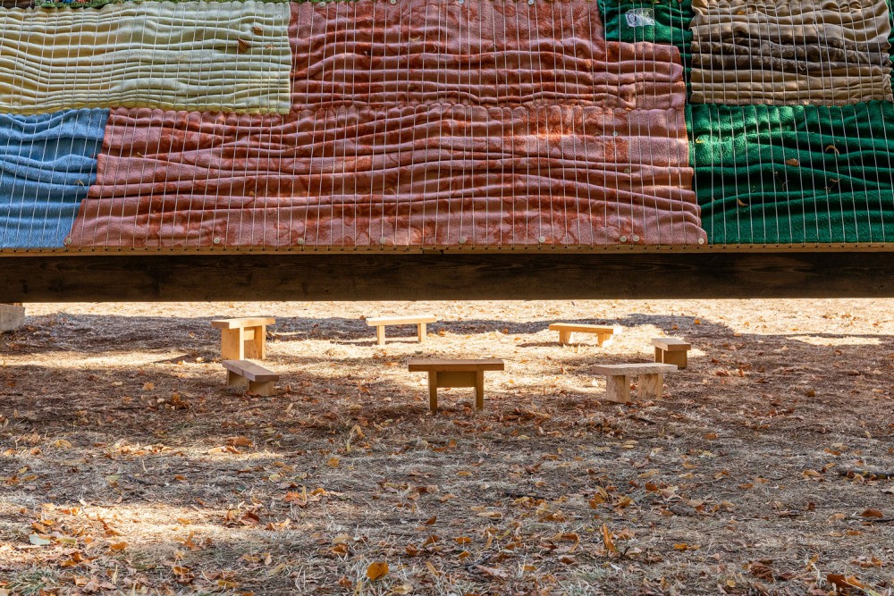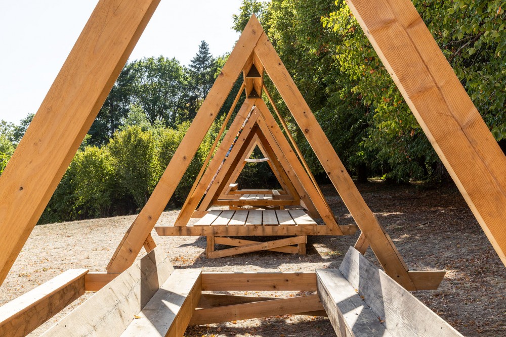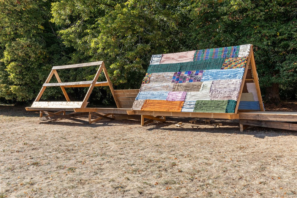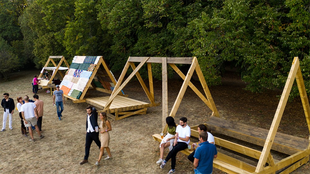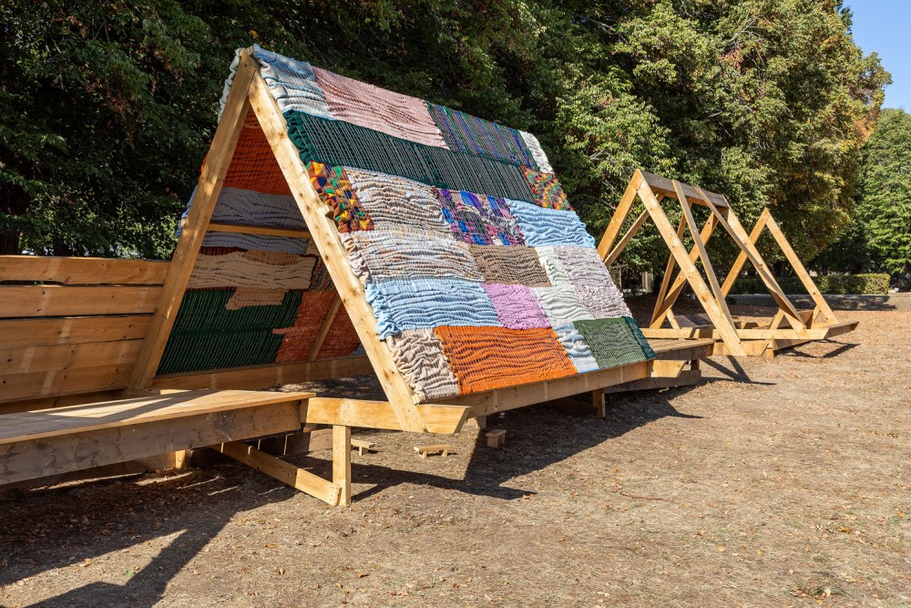 Pour le festival d’arts au Château du Feÿ, TOBî accueille un très beau revêtue du tissage réalisé par Estelle Balet, Estelle Bourdet et Elena Chiavi. La structure accueille les festivaliers pour un moment de détente.